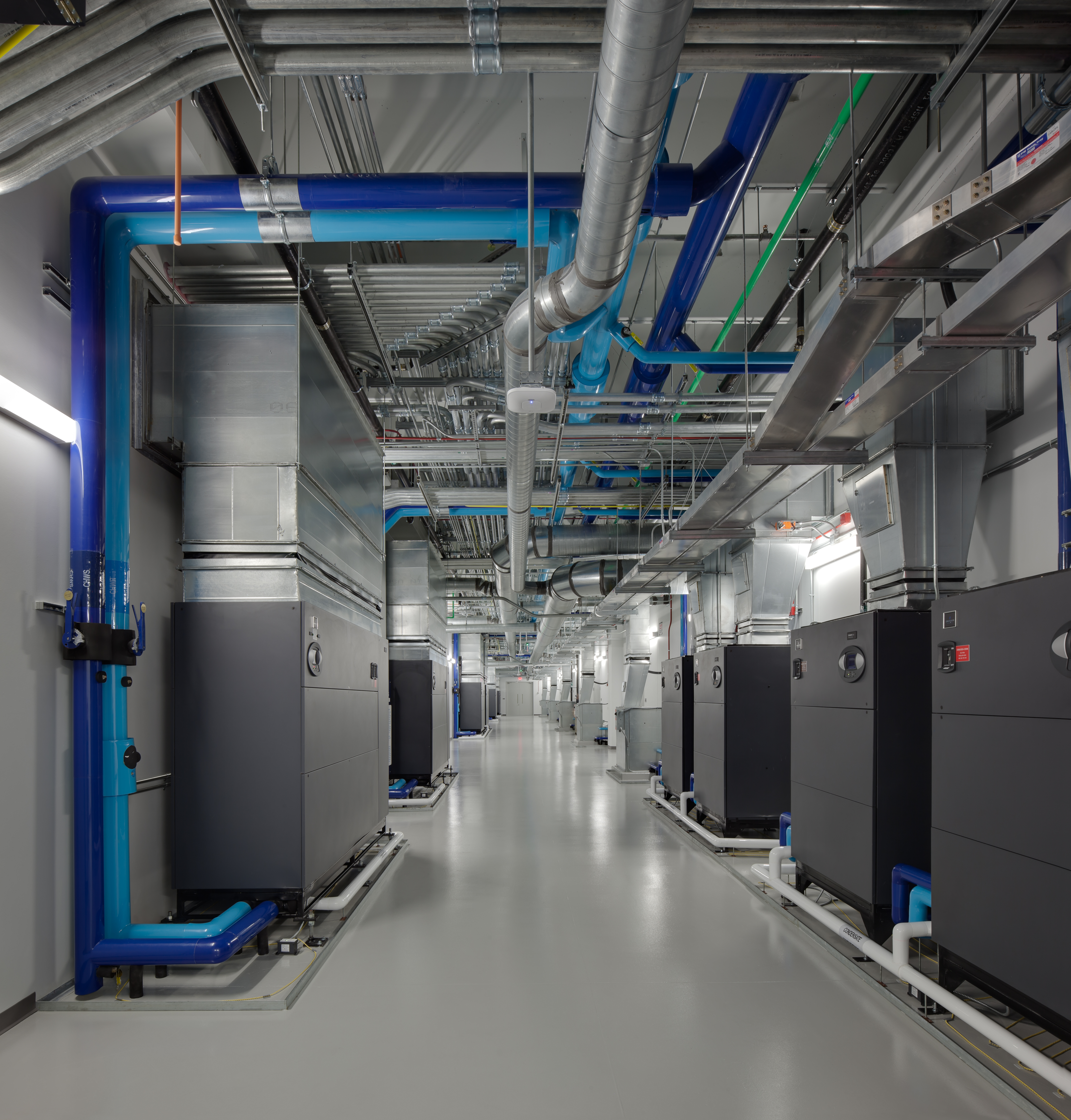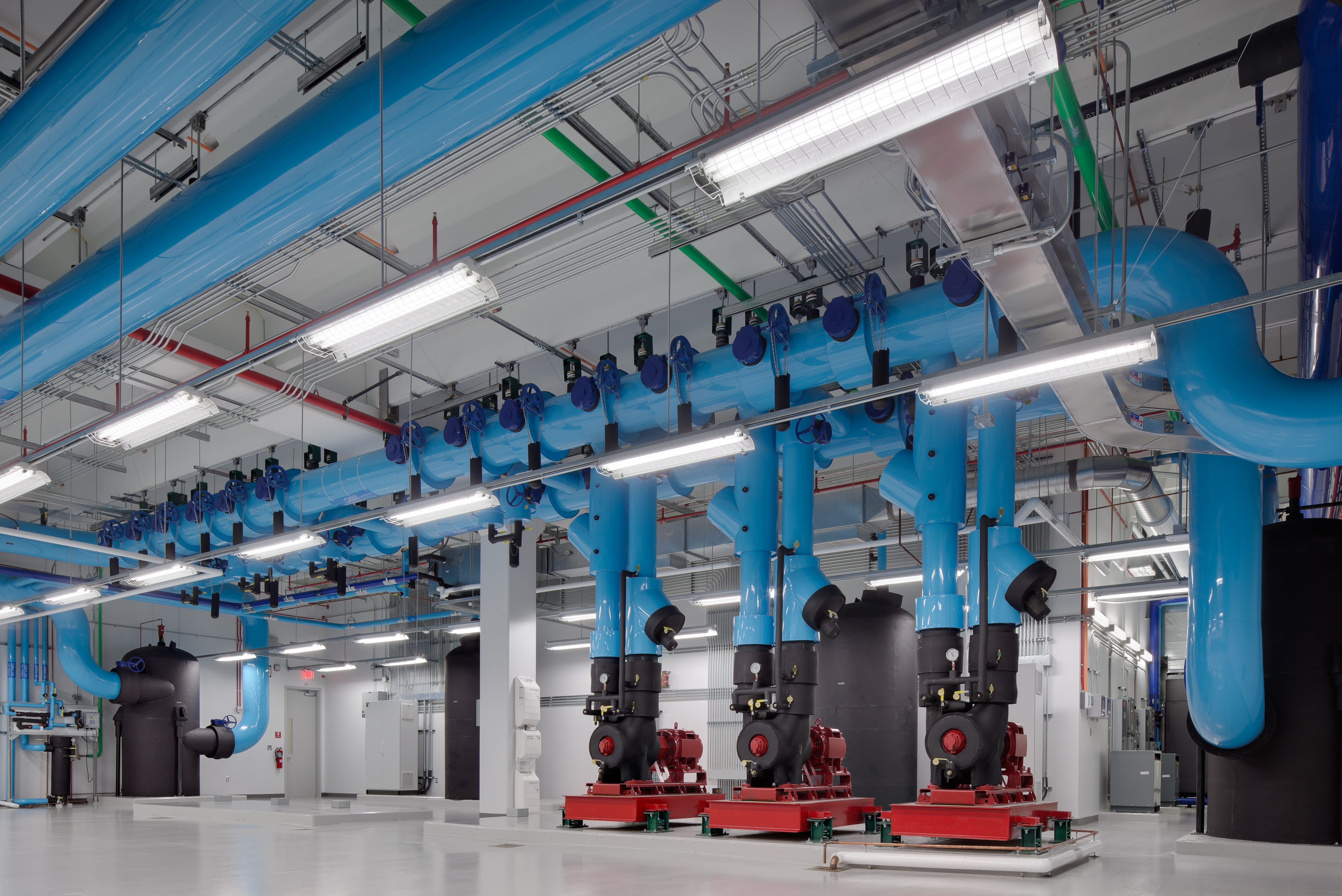 This facility provided our client with a day-one critical load of 3.2MW with infrastructure provisions to support expansion to 8.4MW. Facility redundancy features included three N+1 systems feeding power distribution units with internal static transfer switches, alongside air-cooled chillers and flow-through thermal energy storage tanks to ensure critical resiliency. The facility’s scalable configuration also enabled our client to add additional data halls for a further 48,000 square feet of white space.