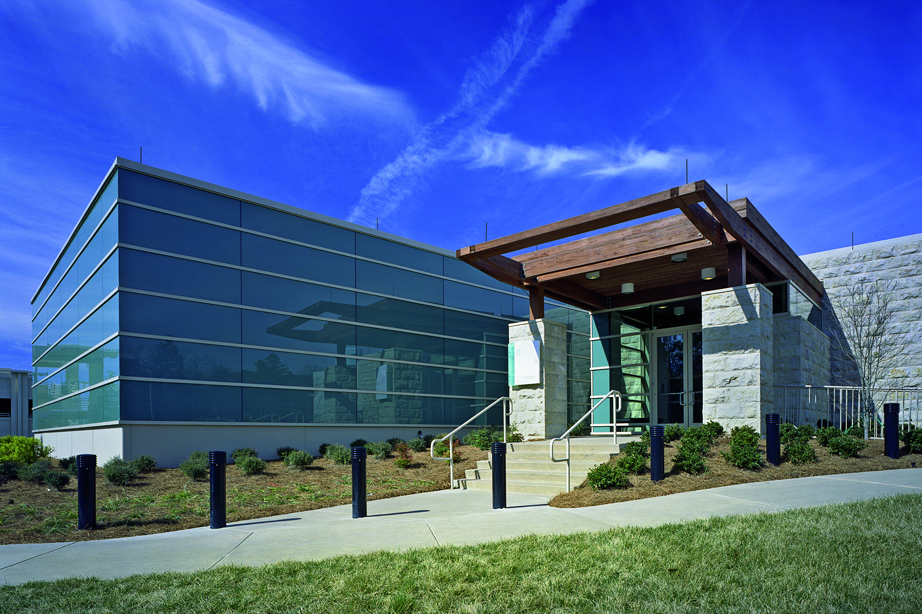 This greenfield facility joins the University Research Park campus of one of the world’s most respected financial services providers. The building’s command center includes 25 operating stations and a 14-foot by 50-foot command data screen.