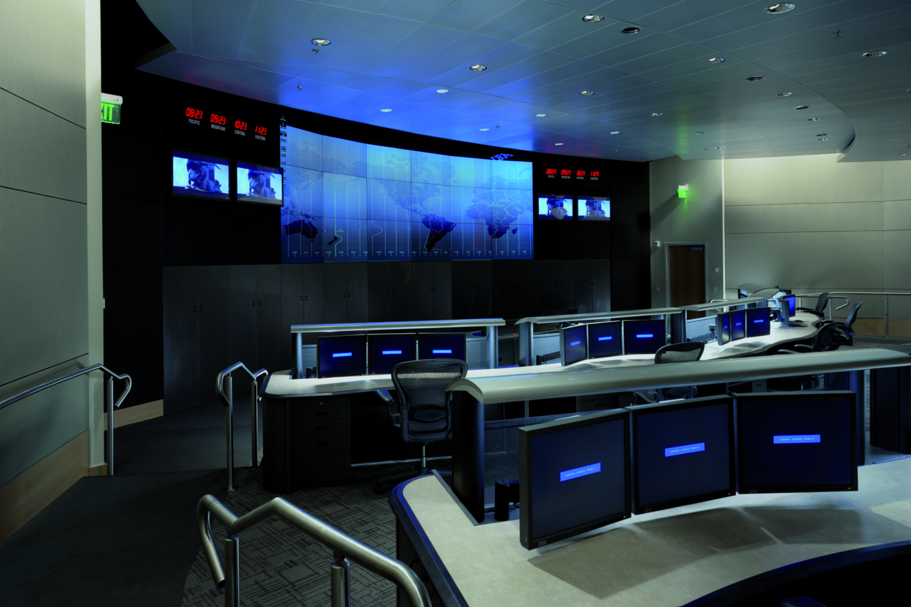 The multi-phased expansion project included an 11,000-square-foot command center with 7,000 square feet of date center areas. Seven command stations flank a 31-foot by 20-foot center command data screen and four 72-inch side screens.