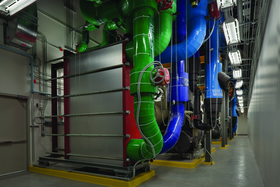 This facility supports up to 700 traders, technicians and sales staff and includes two large trading “bullpens,” offices and a conference center. Connecting the facility’s suite of workstations required more than 2.5 million linear feet of cabling. The floor’s operations are supported by four 1750KW Caterpillar generators, twenty 30-ton Liebert computer room air conditioning units, two UPS units ten central air conditioning systems, a multi-zone pre-action system with fire suppression and 700 server racks.